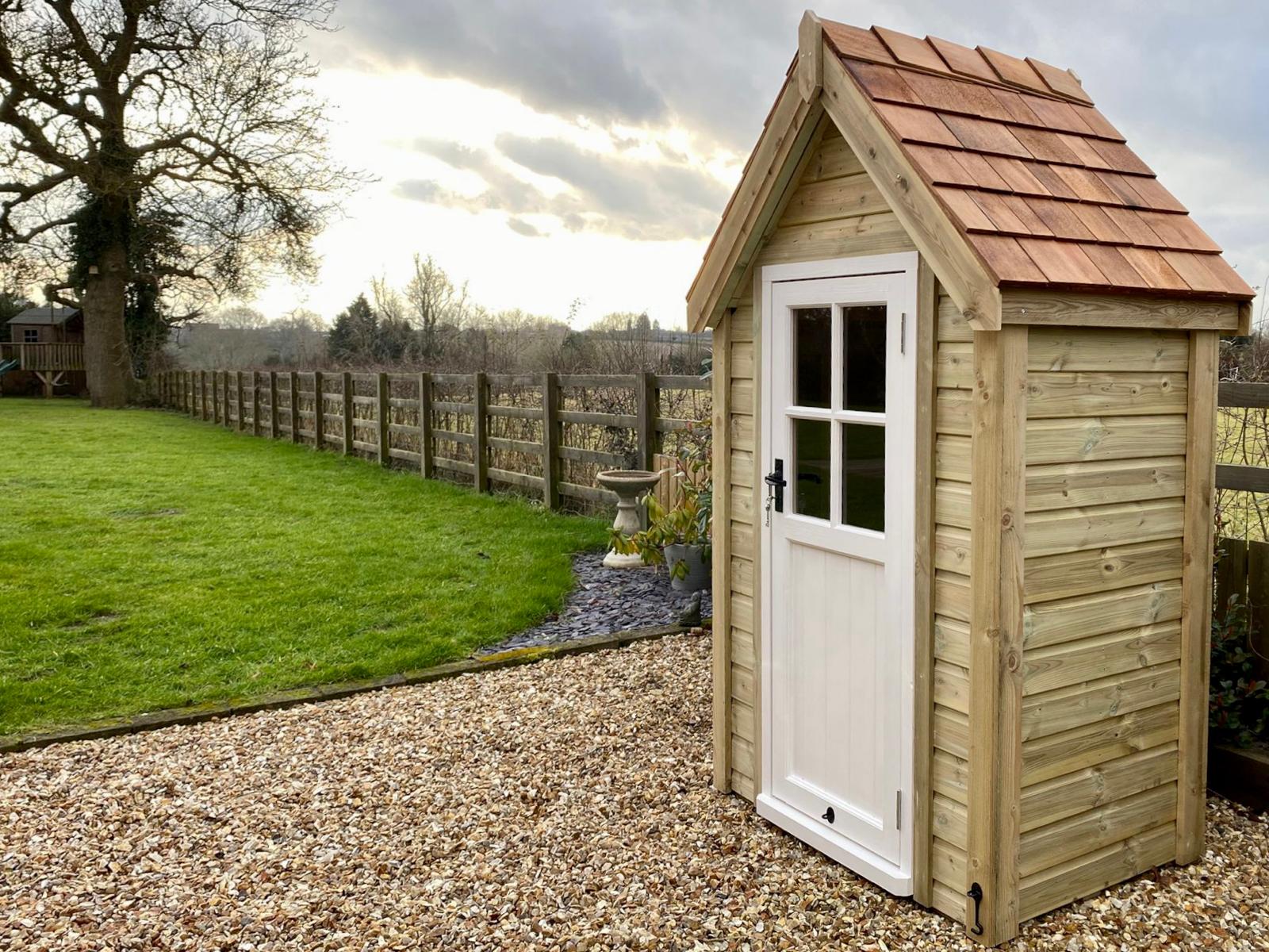 Designed for smaller gardens, courtyards, or patios, The Premium Tool Tidy is your go-to for tidy, reliable garden storage - without taking up too much space. With its steep apex roof and classic profile, it brings all the character of a traditional garden shed in a smaller, more practical format. Clad in durable, tanalised horizontal shiplap and finished with off-white painted accents, it’s ready to work hard and look good doing it. Inside, you’ll find three shelves and four handy hooks to keep tools, pots, and accessories organised and easy to reach. Available in four sizes and with your choice of door style and roof finish - including a budget friendly option too! The Premium Tool Tidy is a small shed with plenty of practical appeal.