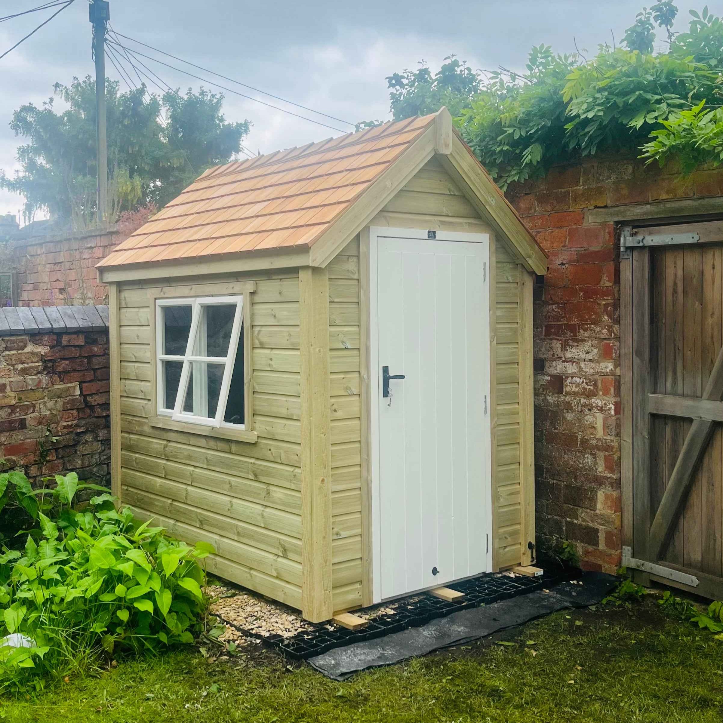 If you're after that timeless shed silhouette - with a no fuss, treated timber finish - The Premium Traditional brings it all together beautifully. With its steep pitched roof, horizontal cladding, and familiar countryside styling, it’s a nod to the classic British garden shed - built stronger and smarter. Crafted with tanalised shiplap cladding and finished with off white painted accents as standard, this version keeps the character while streamlining the features. It’s the same robust construction you’d expect from a Cosy Shed, just without the internal ply lining or fully painted finish. Whether you're after smart storage, a tidy hobby space, or simply a shed that looks right at home in your garden, The Premium Traditional delivers durability, simplicity, and charm - without overcomplicating things.